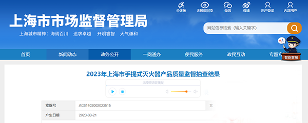 據上海市市場監(jiān)督管理局網站2023年8月21日消息,近期,上海市市場監(jiān)督管理局對上海市生產、銷售的手提式干粉滅火器產品質量進行了監(jiān)督抽查。本次抽查了30批次產品。經檢驗,不合格10批次。其中生產領域3批次,發(fā)現不合格1批次;實體銷售19批次,發(fā)現不合格5批次;電商銷售8批次,發(fā)現不合格4批次。