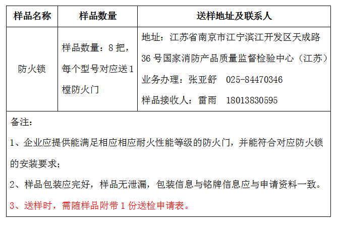 江蘇省南京市江寧濱江開發區天成路36號國家消防產品質量監督檢驗中心(江蘇) 張亞舒 025-84470346